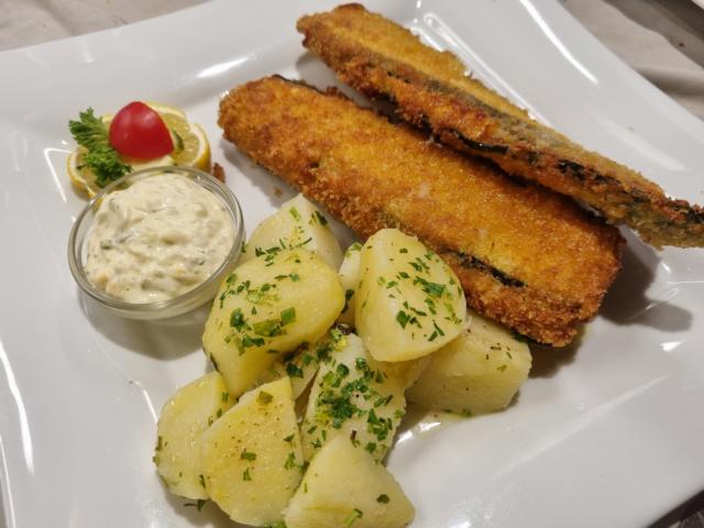 glacierte Maroni, Serviettenknödel, Krokette, Kartoffelknödel, Orangenrotkraut